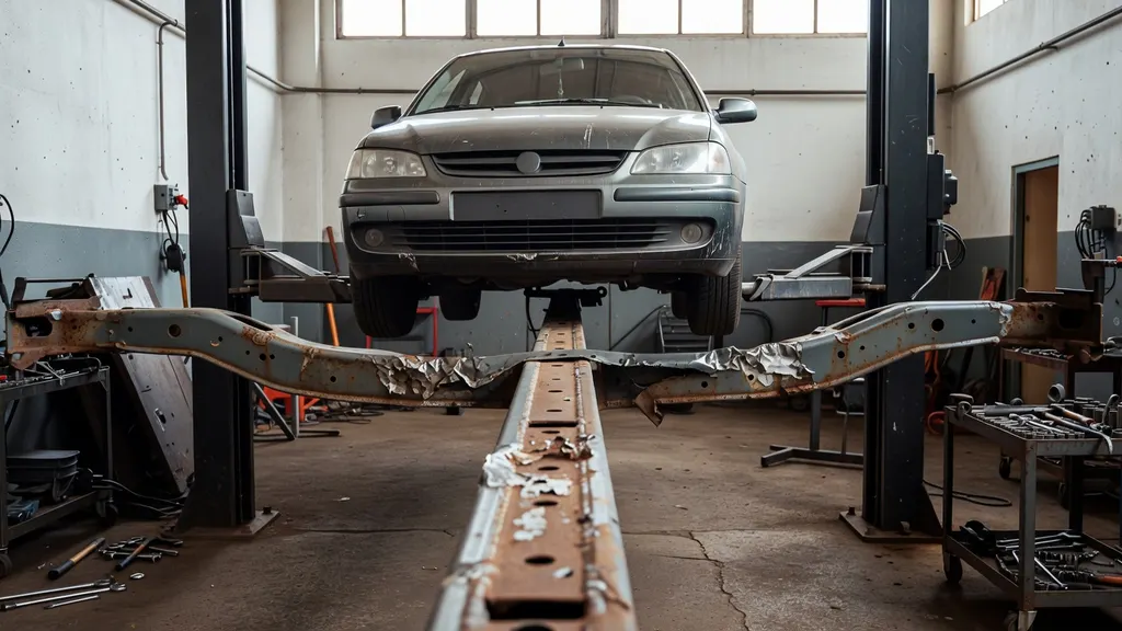 Uszkodzenia powypadkowe obejmują wygięcie, skręcenie i przemieszczenie podłużnicy, a także przesunięcie punktów mocowania zawieszenia, sanek lub elementów przedniego pasa. Występują pęknięcia, rozdarcia blachy i deformacje przetłoczeń, które były zaprojektowane do pracy w kontrolowany sposób. Kluczowe jest, czy naruszone zostały punkty bazowe nadwozia, bo to one determinują możliwość przywrócenia wymiarów.